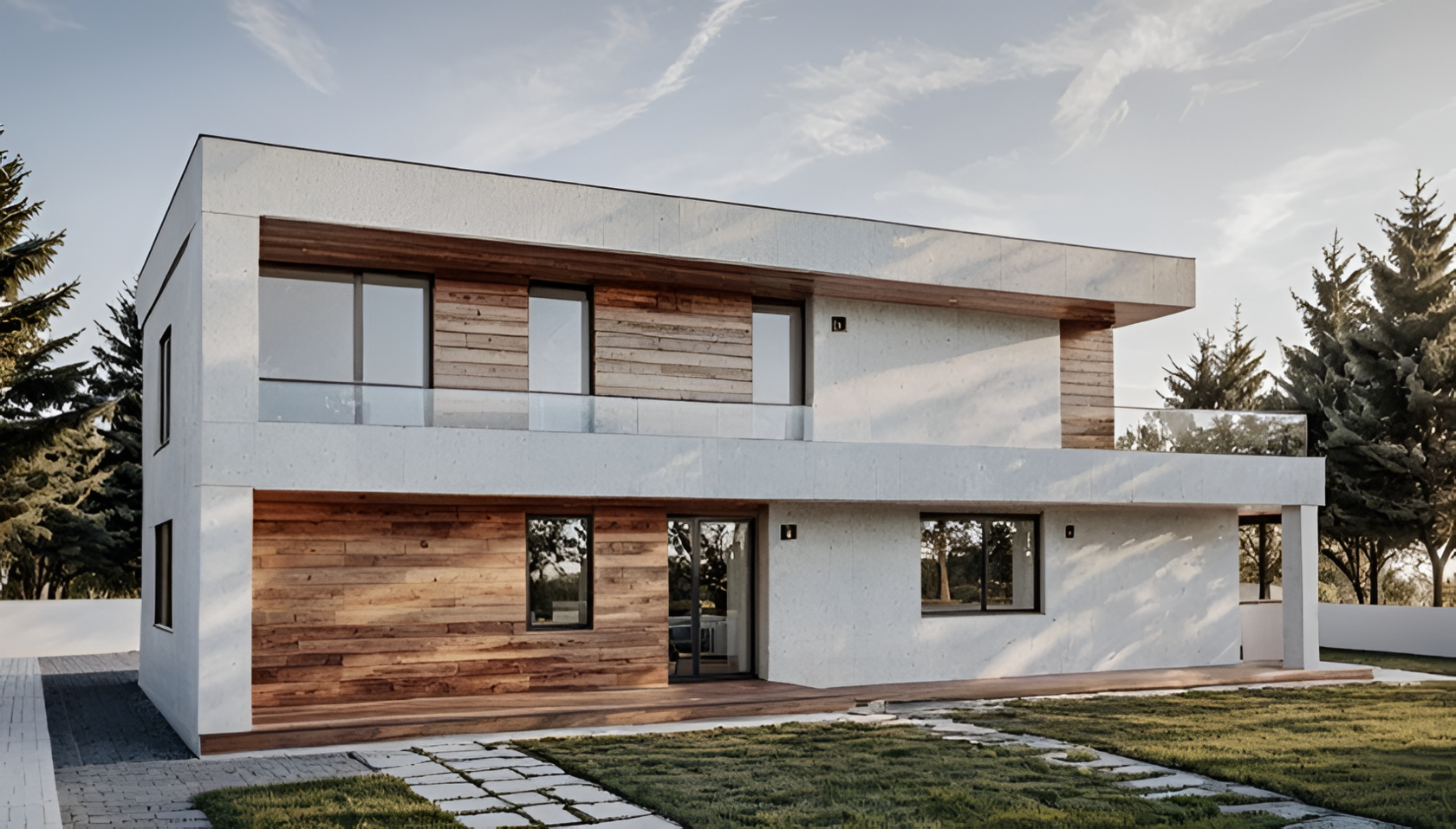 Экстерьер ДСУ-170/2 выполнен в сдержанной геометрии с акцентами из планкена - деревянных вставках на фоне светлой штукатурки. Панели долговечны, не требуют ухода и долго сохраняют свежий вид.