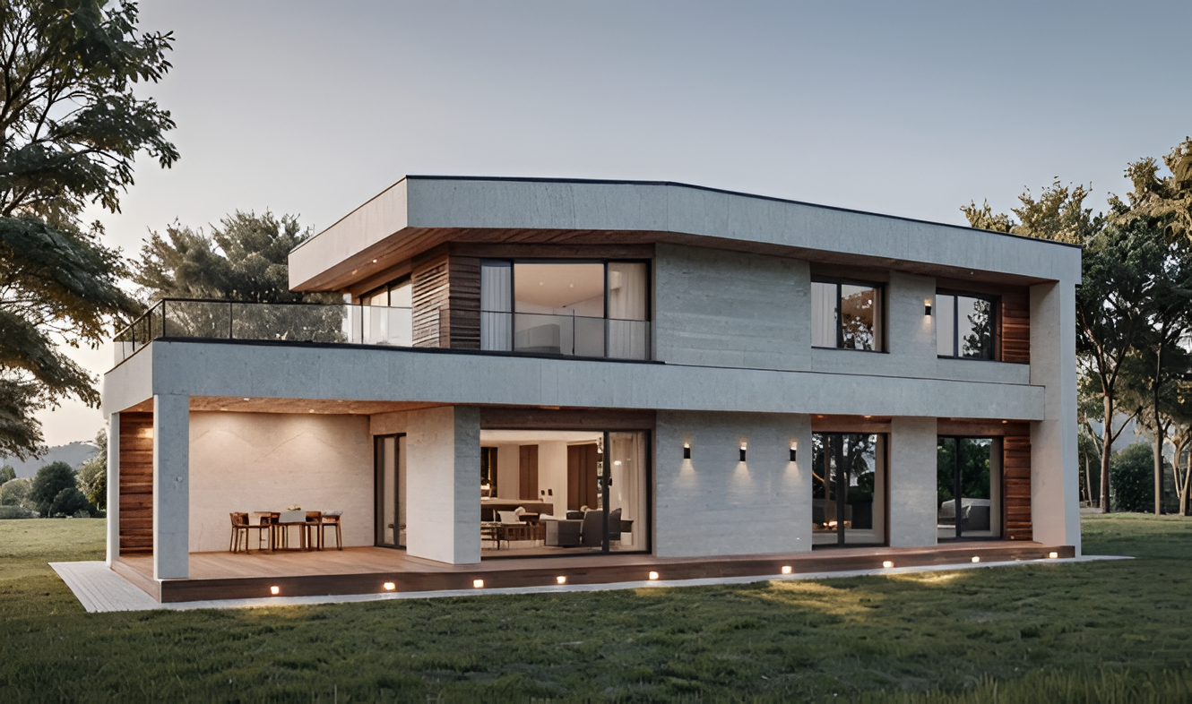 Панорамные окна наполняют дом светом, а терраса расширяет жилое пространство и связывает дом с участком.